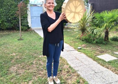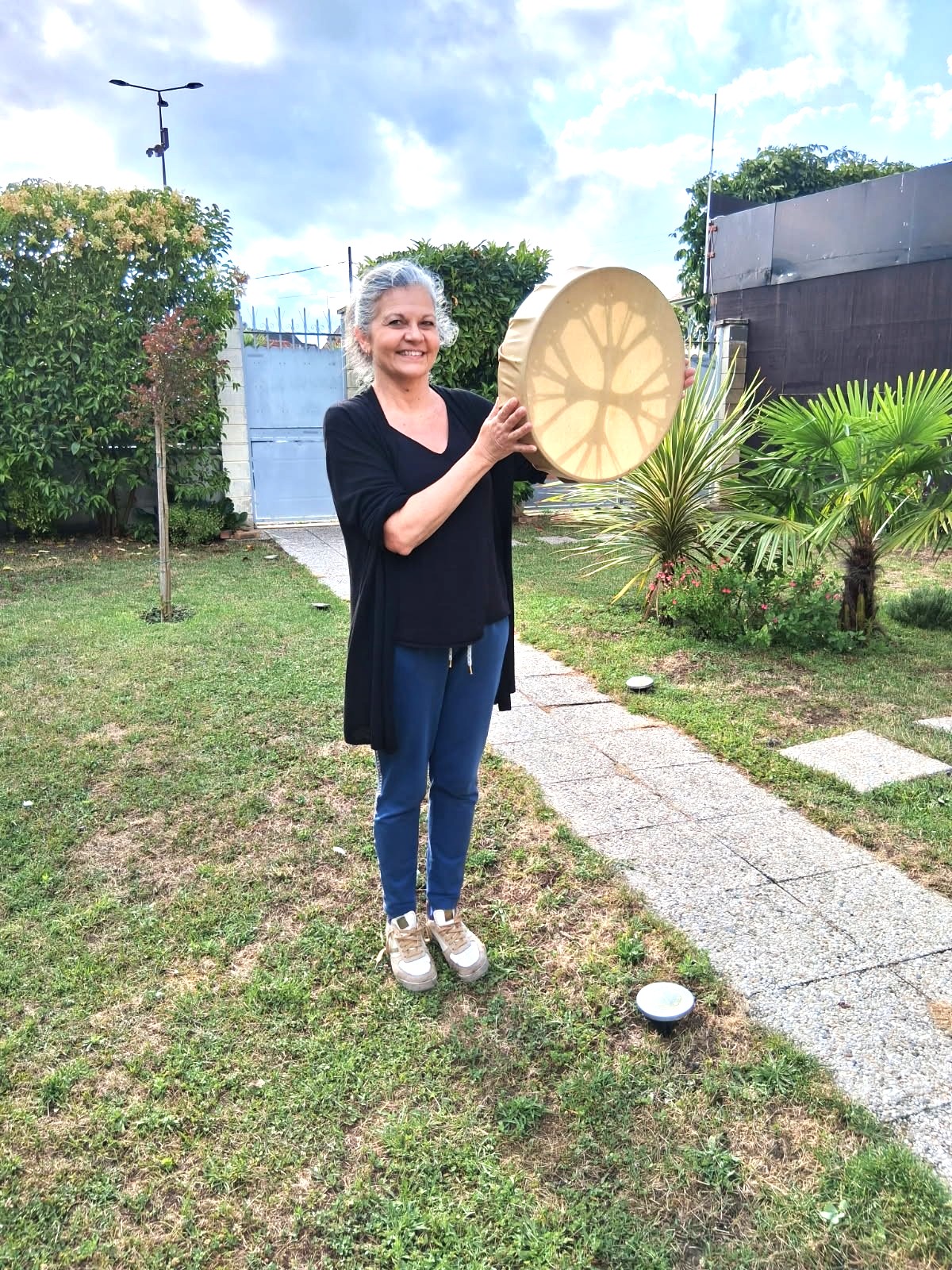 Merci Bettina, pour ces deux jours si riches en émotions et en vibrations. Tu es très pédagogue, très à l’écoute, remplie de bienveillance. Mon Tambour va m’accompagner auprès des enfants et des personnes qui ressentent de la douleur physique et psychique. Il va me guider pour leur apporter un apaisement. Je sentais un appel du Tambour depuis un certain temps, mais j’avais une retenue par rapport au rythme. J’avais la crainte de ne pas être dans le rythme. Mais le rythme s’apprend en pratiquant. Cette pratique est différente, ce n’est pas qu’un exercice de sonothérapie, c’est un son relié au spirituel, au sacré. Merci. Merci. Merci